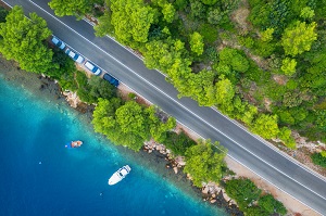 수많은 섬과 만으로 이루어진 내해(內海)를 따라 펼쳐진 해안도로의 한편에는 조용한 어촌마을이 있고, 다른 편에는 깊고 푸른 빛깔의 그림 같은 바다가 펼쳐져 있습니다. 경남 창원과 고성을 연결하는 동진대교가 있는 해안도로는 한국의 아름다운 길 100선에 선정된 드라이브 하기에 좋은 곳입니다. 통영 평인일주로 노을길은 통영의 새롭게 각광받는 드라이브 명소로 약 4.1㎞의 해안도로입니다.